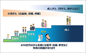 皆さんは「AYA(あや)世代」という言葉を聞いたことがありますか?AYAとは、「Adolescent and Young Adult(思春期や若年成人)」の略で、一般的に15歳から39歳ぐらいまでの年齢層の人を指しています。