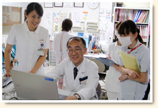 当院では2007年に緩和ケアチームの活動を開始し、現在は週1回のカンファレンスと回診を行っています。徐々に緩和ケアチームが認知され、現在は依頼数も安定してきています。現在は外科病棟に在籍しているため、主に自部署の患者さんのケアを行い、その他2014年に開棟予定の緩和ケア病棟の開棟準備などを他の認定看護師と共に行ったり、リンクナース、他部署との連携が図れるよう定例会を開き調整をしています。